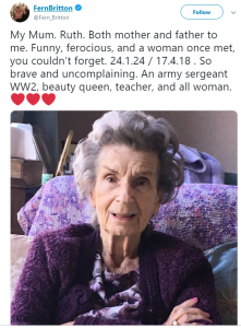 Ruth raised Fern and her older sister Cherry as a single parent after she split from their father Tony, now 93, when the television star was just a baby.