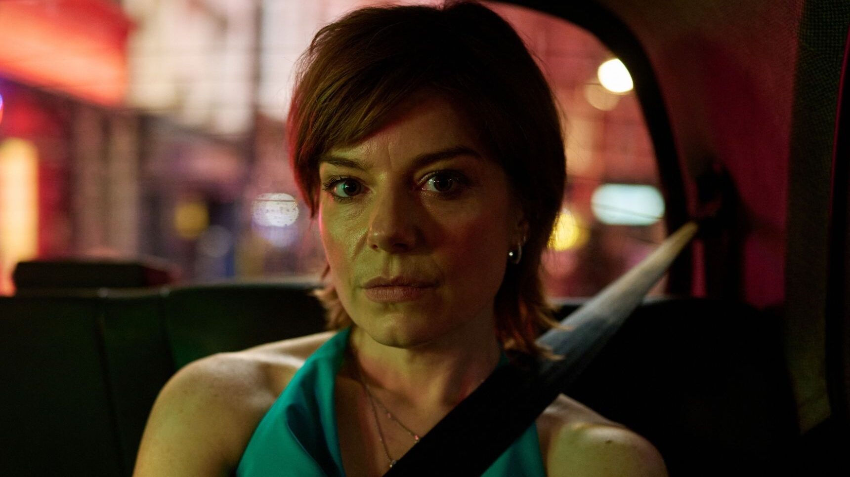 Strapped in, Sarah – played by Welsh actress Aimée-Ffion Edwards – has no idea the horror about to unfold.