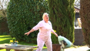 Fans of the show were left crying with laughter when Gemma accidentally hit her pet dog Frank over the head with a bag full of Easter eggs.