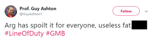 Another said: “Arg just said who was killed in last nights #lineofduty,” while a third added: “Arg has spoilt it for everyone, useless fat fuck. #LineOfDuty #GMB.”
