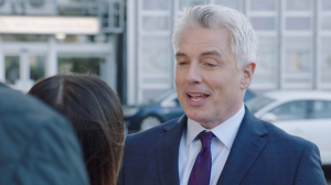 He is also seen eyeing Ange across a bar – is he in town to tempt her away from Holby?
