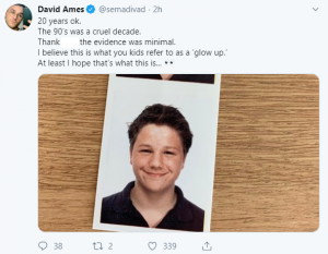 He wrote: “20 years ok. The 90’s was a cruel decade.