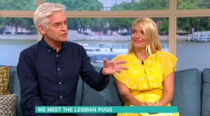 The presenter and her co-star Phillip Schofield spoke to pet owner Christine King with her lesbian pugs, Pugly and Nelly, alongside vet Dr Scott Miller.