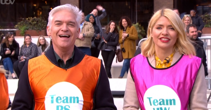 To celebrate Pancake Day on Tuesday’s show, hosts Holly and Phillip Schofield joined some of their co-stars, including Alice, Dr Chris, Vanessa Feltz, Sharon Marshall and Trinny Woodall, to take part in a race.