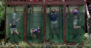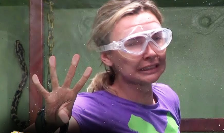 “Oh my God, I hate it,” whines Nadine as she has difficulty remembering her instructions, which include unpicking a lock attached to her wrist and making her way to the bottom of the tank to retrieve ‘codes’.