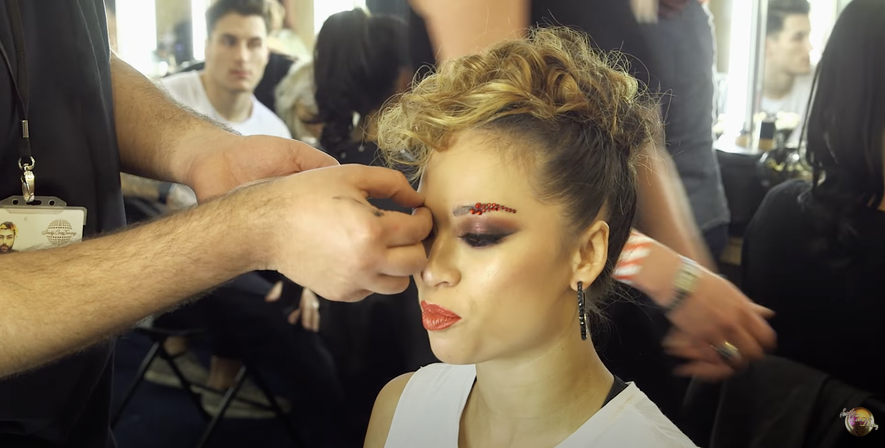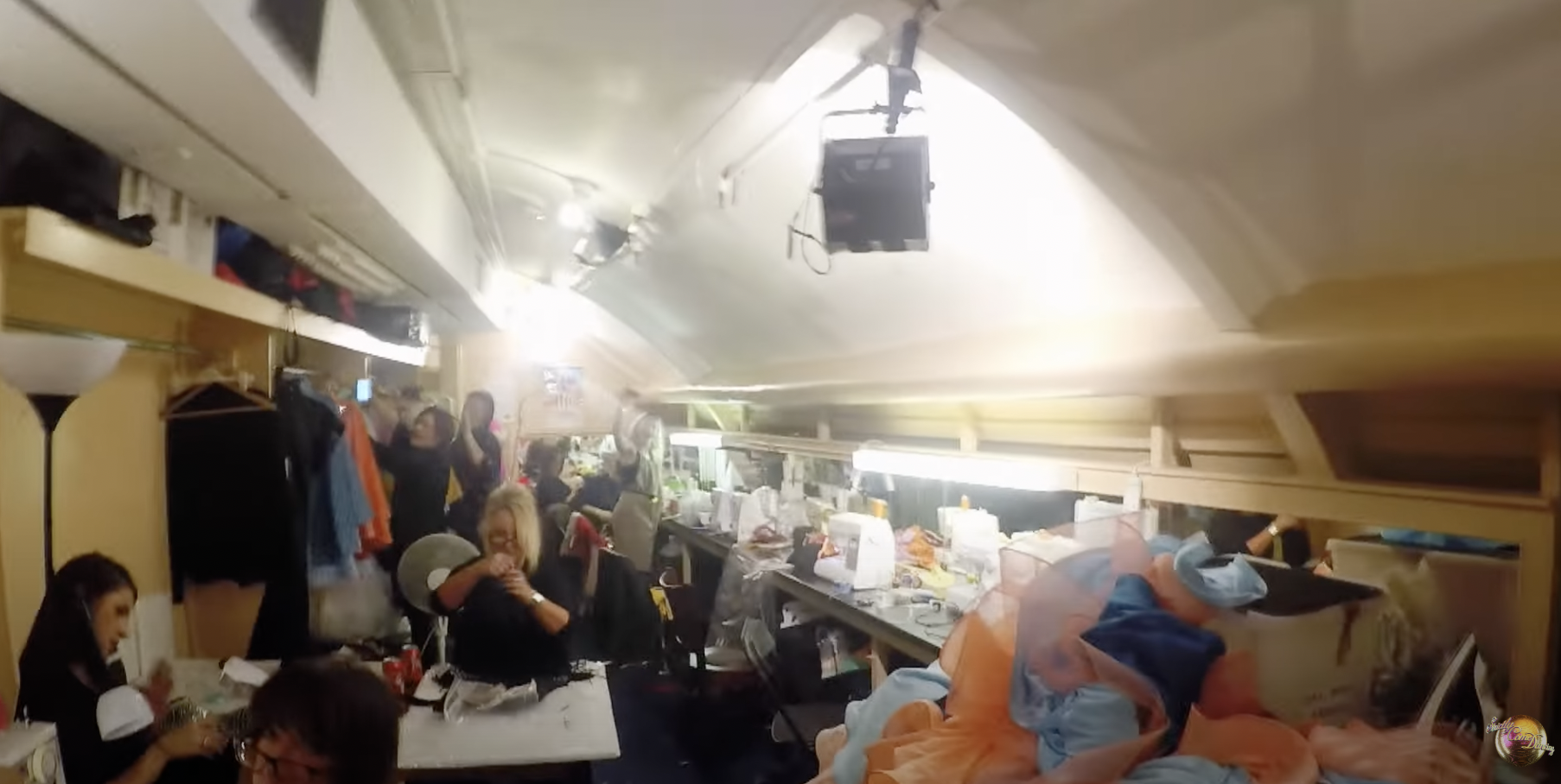 So the temporary backstage area set up by the production team is a maze of cramped corridors, lined with tech equipment and small rooms which are commandeered by the wardrobe and makeup departments.