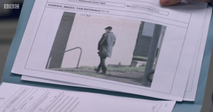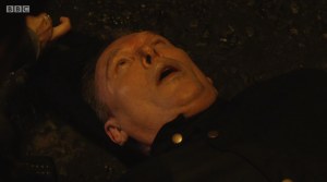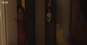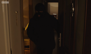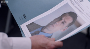 At the end of episode three, Corbett showed up at Mrs Hastings’ place looking for Ted and pretending to be Steve Arnott. His face was in shadow as he held up a forged ID card and introduced himself.