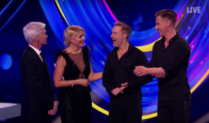 Lorraine, 57, was speaking with Ian ‘H’ Watkins and Matt Evers about their Dancing On Ice departure last night when Phillip came up.
