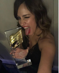 Presenter Caroline Flack has shared her delight in the show’s success by posting pictures of her posing with the awards, while today she expressed her excitement over the Bafta nominations.