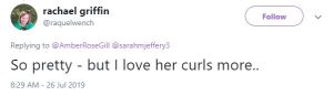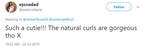 A third commented: “Such a cutie!!! The natural curls are gorgeous tho X.”