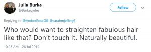 Another wrote: “Who would want to straighten fabulous hair like that? Don’t touch it. Naturally beautiful.”