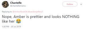 Someone put: “Nope, Amber is prettier and looks NOTHING like her.”
