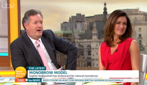 Piers Morgan has jumped to the defence of an Instagram model trolled for her unforgettable monobrow.
