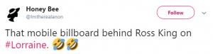 One person said: “That mobile billboard behind Ross King on #Lorraine.”