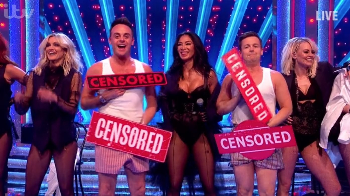 As the pop group performed, Ant and Dec joined them onstage, making reference to the girl group’s racy appearance on The X Factor.