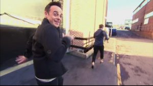 Little does he know, of course, that Ant and Dec are hidden away behind the scenes, orchestrating the whole thing.