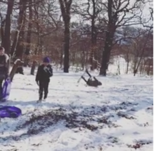 Next to the clip she wrote: “Me: Babe don’t snowboard here there’s too many rocks, babe you don’t have the right shoes, bub please don’t snowboard here it’s dangerous…