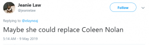 Another suggested: “Maybe she could replace Coleen Nolan.”