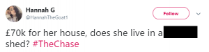 Taking to Twitter, one fan wrote: “£70k for her house, does she live in a [expletive] shed?”