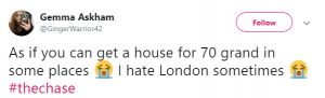 Another said: “As if you can get a house for 70 grand in some places I hate London sometimes,” while a third added: “70k for a house!! Can’t even get a static caravan for that near me.”