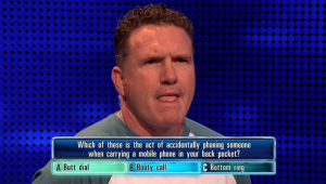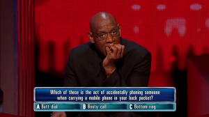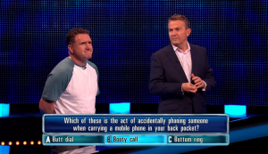 Alun was asked: ‘Which of these is the act of accidentally phoning someone when carrying a mobile phone in your back pocket?’