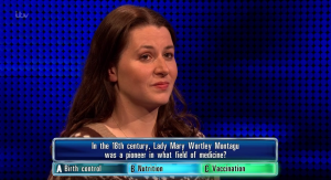 And even though Vicki seemed confident with her answers, she unfortunately slumped to a disastrous loss by getting her first two questions against The Governess wrong, including one about a pioneer in vaccination.