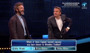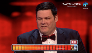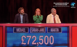 The chaser took part in a celebrity version of the show – alongside McFly’s Danny Jones, actor Michael Sheen, Sky News presenter Sarah-Jane Mee and newsreader Martin Bell – where their winnings would be donated to Soccer Aid.