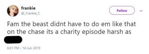 Another added: “The Beast didn’t have to do them like that on The Chase, it’s a charity episode, harsh as [bleep].”