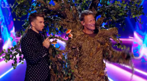 Footballing legend Teddy Sherringham was the latest star to be unmasked from his highly elaborate Tree costume on Saturday night.