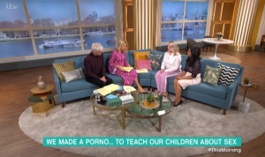She was interviewing two of the mothers from the new Channel 4 documentary Mums Make Porn alongside co-host Phillip Schofield when she accidentally made a cheeky innuendo.