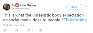 Another said: “The moral here… be happy with who you are. #ThisMorning.”