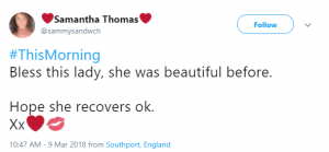 Another said: “Bless this lady, she was beautiful before. Hope she recovers ok.”