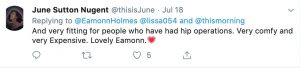 The Tweeter wrote: “And very fitting for people who have had hip operations. Very comfy and very Expensive. Lovely Eamonn,” followed by a red heart emoji.