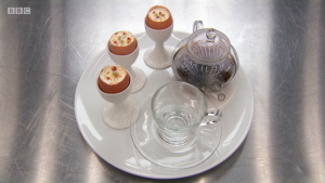 Meanwhile, IT manager Greg’s full English in an eggshell concoction of egg yolk, crème fraîche, mushroom and bacon dust, sausage mousse and coriander honey with a mushroom and masala broth was praised by both judges and viewers for its inventiveness – but it is hardly a fry up, is it?