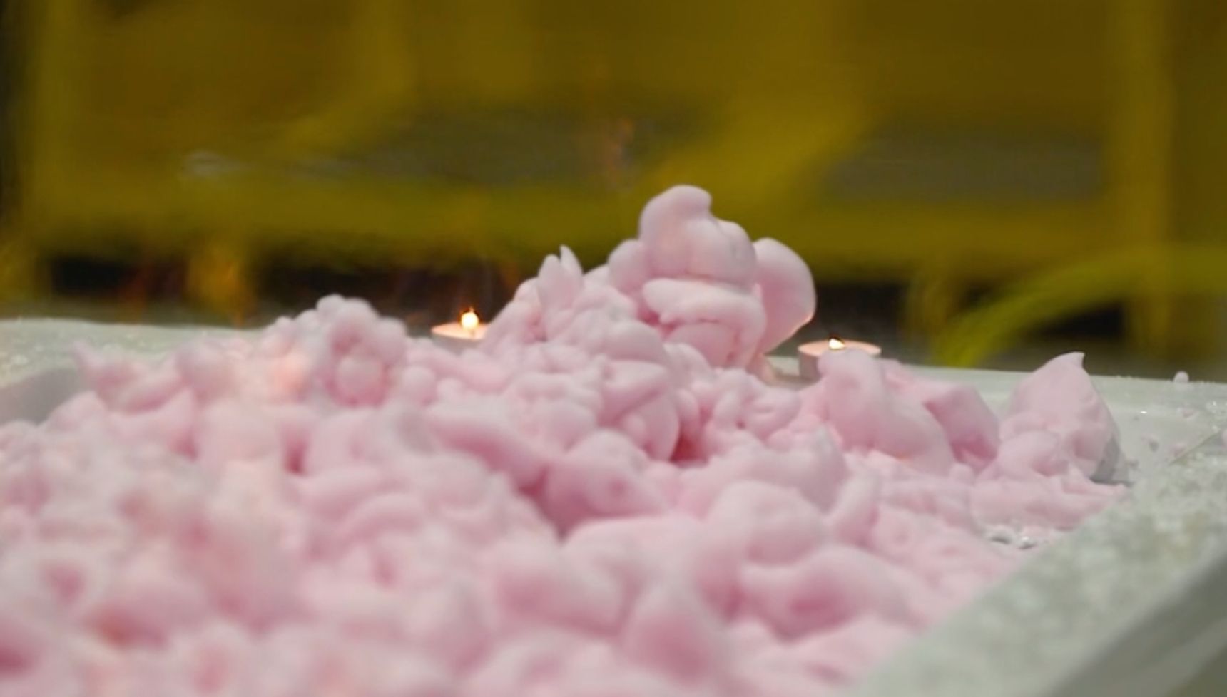 They placed two tealight candles next to a bath filled to the top with foam. The foam quickly caught fire, prompting gasps from Tess and Vernon.