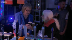 An on-screen caption revealed: “Since filming, Lesley has come out to a small group of family and friends and is in a relationship with a woman she met on her night out at the pub with the ‘sages’.”
